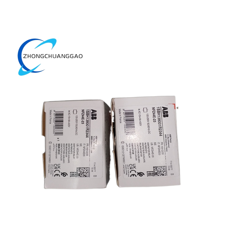 The ABB NFZ44E-23 (1SBH136001R2344) is an advanced, low-power consumption contactor relay designed for reliable switching in auxiliary and control circuits across industrial and railway applications. It features an electronic coil interface that accepts a wide range of AC/DC control voltages, eliminating the need for coil changes across different voltage systems. This 8-pole relay integrates 4 Normally Open (NO) and 4 Normally Closed (NC) mechanically linked contacts, providing robust signal switching with exceptional durability. Engineered for high-performance operation, it offers built-in surge protection, voltage dip immunity, and direct PLC compatibility, making it ideal for demanding environments requiring stable, low-energy control switching.